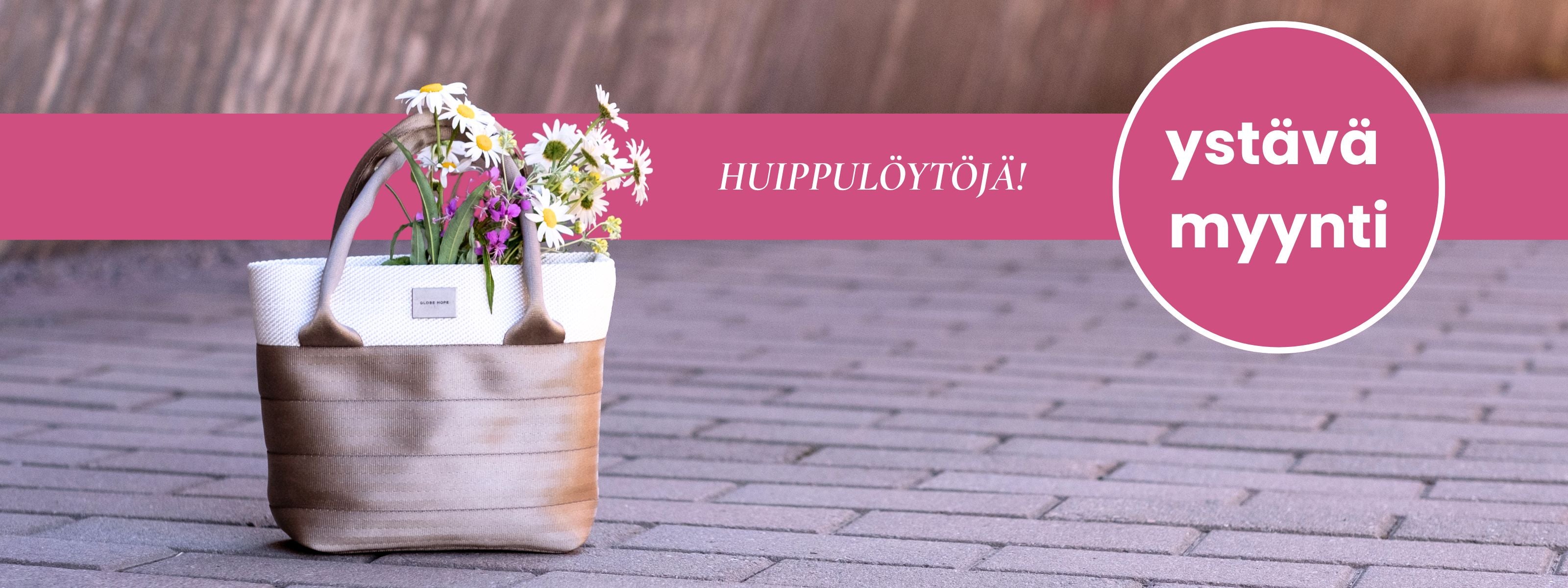 Valmistamme tuotteemme kierrätetyistä ja ylijäämämateriaaleista – kuten turvavöistä, messumatoista, laskuvarjokankaista ja purjeista.